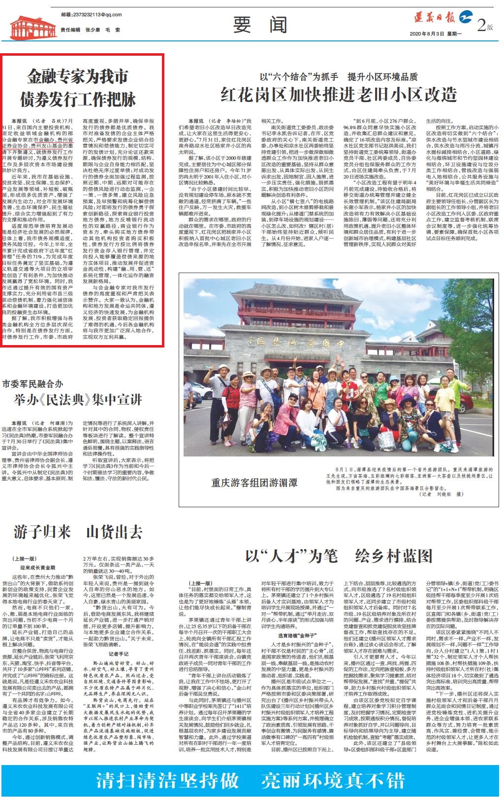 遵义日报刊登报导《金融专家为我市债券发行工作把脉》